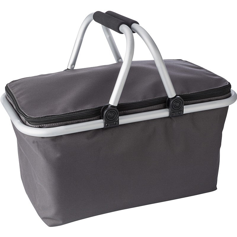 Deze handige boodschappenmand is ideaal voor winkelen en picknicken, omdat het ook dienst doet als koeltas. De mand heeft een geïsoleerd groot vak, een aluminium frame met comfortabele EVA-schuim handvatten en sluit met een rits aan de bovenkant. Afmetingen: 48x28x24cm.