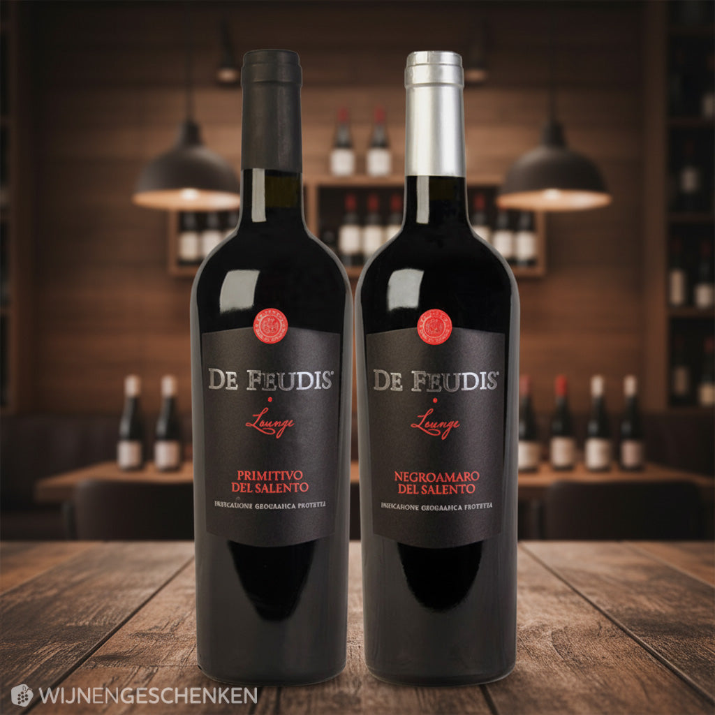 Een duo dat niet in uw wijnkast mag ontbreken. Deze heerlijke wijnen komen van het wijnhuis de Feudis. De wijnen zijn afkomstig uit Puglia. Puglia ligt in de hak van Italië. Deze prachtige wijnstreek heeft zijn naam waargemaakt met deze heerlijke wijnen.